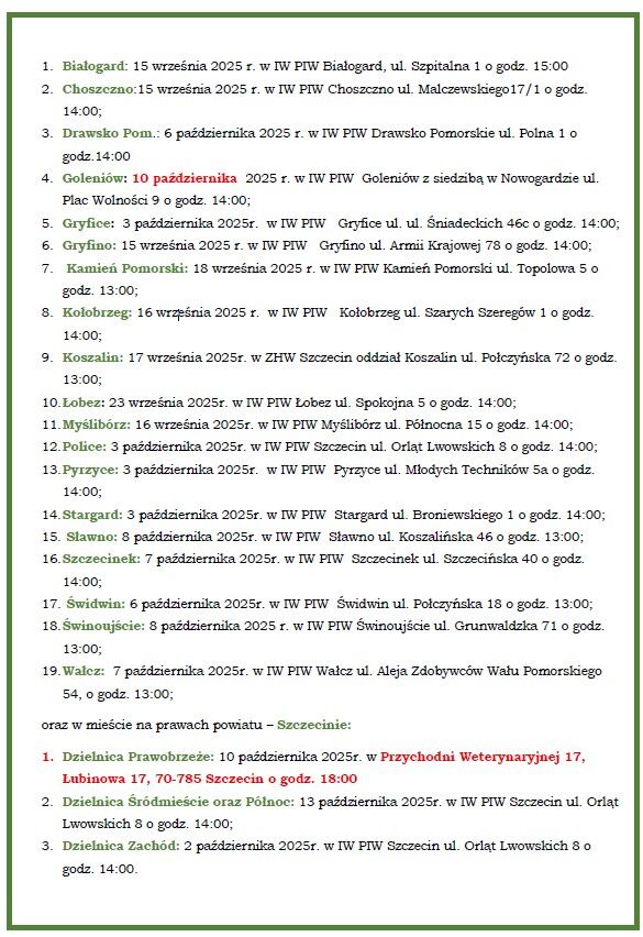 Ponadto, uwzględniając zgłaszaną przez zainteresowanych, potrzebę bezkolizyjnego umożliwienia uczestnictwa wszystkim zainteresowanym zarówno w Zjeździe Sprawozdawczo-Wyborczym Zachodniopomorskiej Izby Lekarsko-Weterynaryjne jak i w 33 Międzynarodowym Kongresie Medycyny Weterynaryjnej Małych Zwierząt PSLWMZ, w drodze podjętej jednogłośnie w dniu dzisiejszym uchwały, data Zjazdu została ustalona na dzień 18 listopada 2025 roku w Goleniowie w Hotelu FJ Duet , ul. Maszewska 19, 72-100 Goleniów o godzinie 11:00.